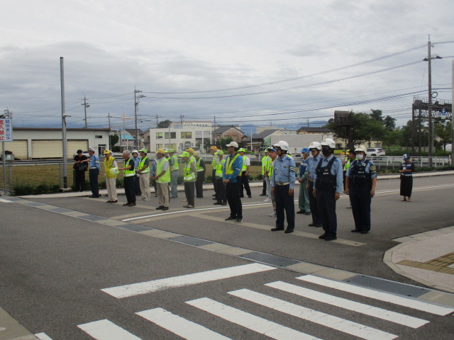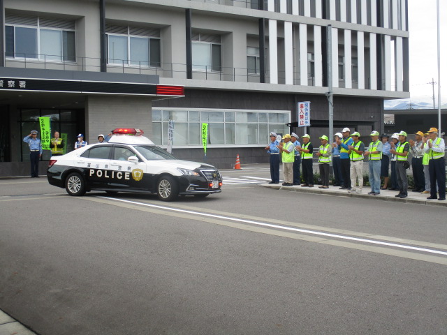 9月19日(金)午前7時から、富山南警察署正面玄関前において「秋の全国交通安全運動」結団式が行われ、富山南警察署員、富山南交通安全協会役員、同安全運転管理者部会役員、地域交通安全活動推進委員、交通指導員が参加しました。結団式では、平野富山南警察署長、稲田富山南交通安全協会長の挨拶の後、交通安全広報・取り締まり部隊の出発を参加者全員で見送りました。秋の全国交通安全運動は、「ゆずりあう 心でひろがる 無事故の輪」をスローガンに9月21日(日)から9月30日(火)までの10日間実施されます。