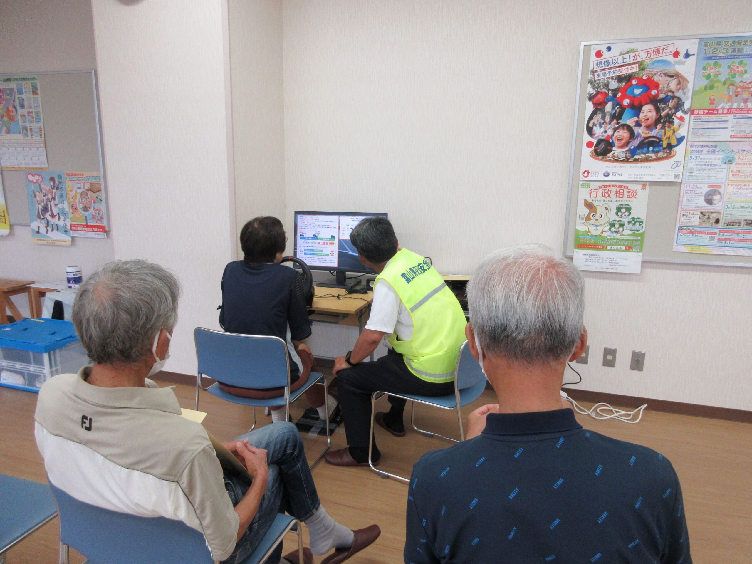 同教室では、市役所、地域交通課長の講話に引き続き、県安全協会による高齢者ドライビングクリニック検査機器(視野診断計、ドライブチェッカー)による検査及び交通安全指導が行われました。