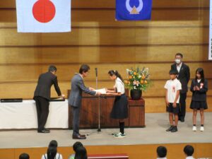 交通事故犠牲者に対する黙祷、大会長あいさつ、交通安全ポスターコンクール 入賞者の表彰式、大会宣言採択に続き、アトラクションとして田中小学校ブラス バンド部が演奏を披露しました。