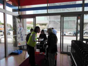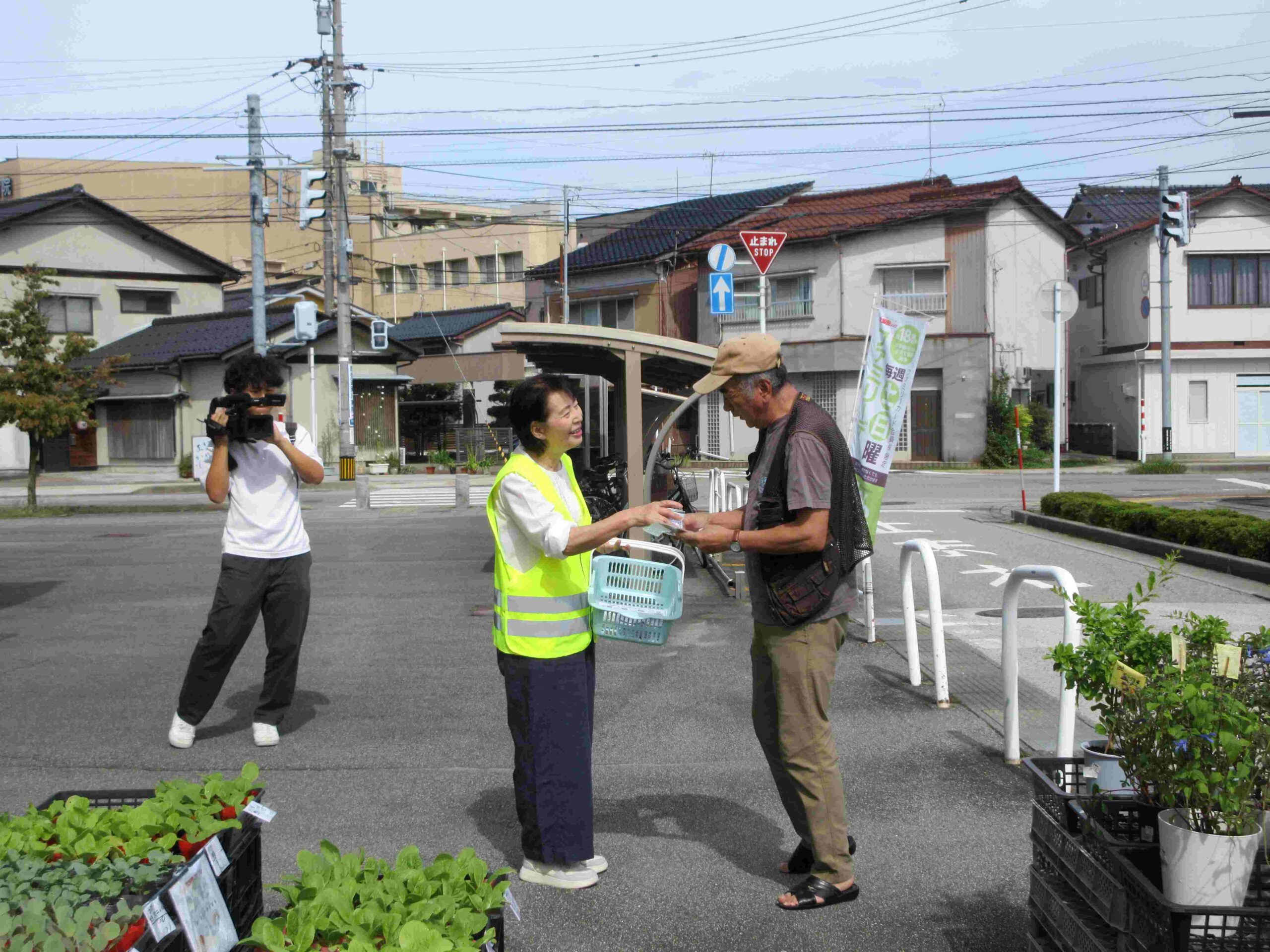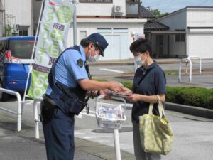 9月22日(月)、「横断歩道思いやりの日」に、ショッピングセンター・エール において、来店客に「横断歩道は止まらなアカン」と滑川高校海洋科製造の 缶詰やチラシを配り、横断歩道での思いやり通行を呼びかけました。