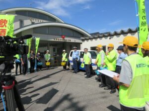 9月24日 シートベルト・チャイルドシート着用徹底の日に合わせ、魚津市交通センター安全運転・運行管理者部会が、魚津警察署中央交番前で魚津産の「20世紀梨」100個を配布して、交通事故「なし(梨)」シートベルト着用を呼び掛けました。