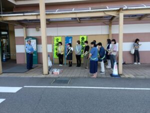9月24日(水)午前10時から、ファボーレにおいて南商工会女性部婦中支部(支部長 稲土真寿美)がキャンペーンを実施。交通安全標語入りの手作りストラップとチラシを来場者に配布し、交通安全を呼びかけました。