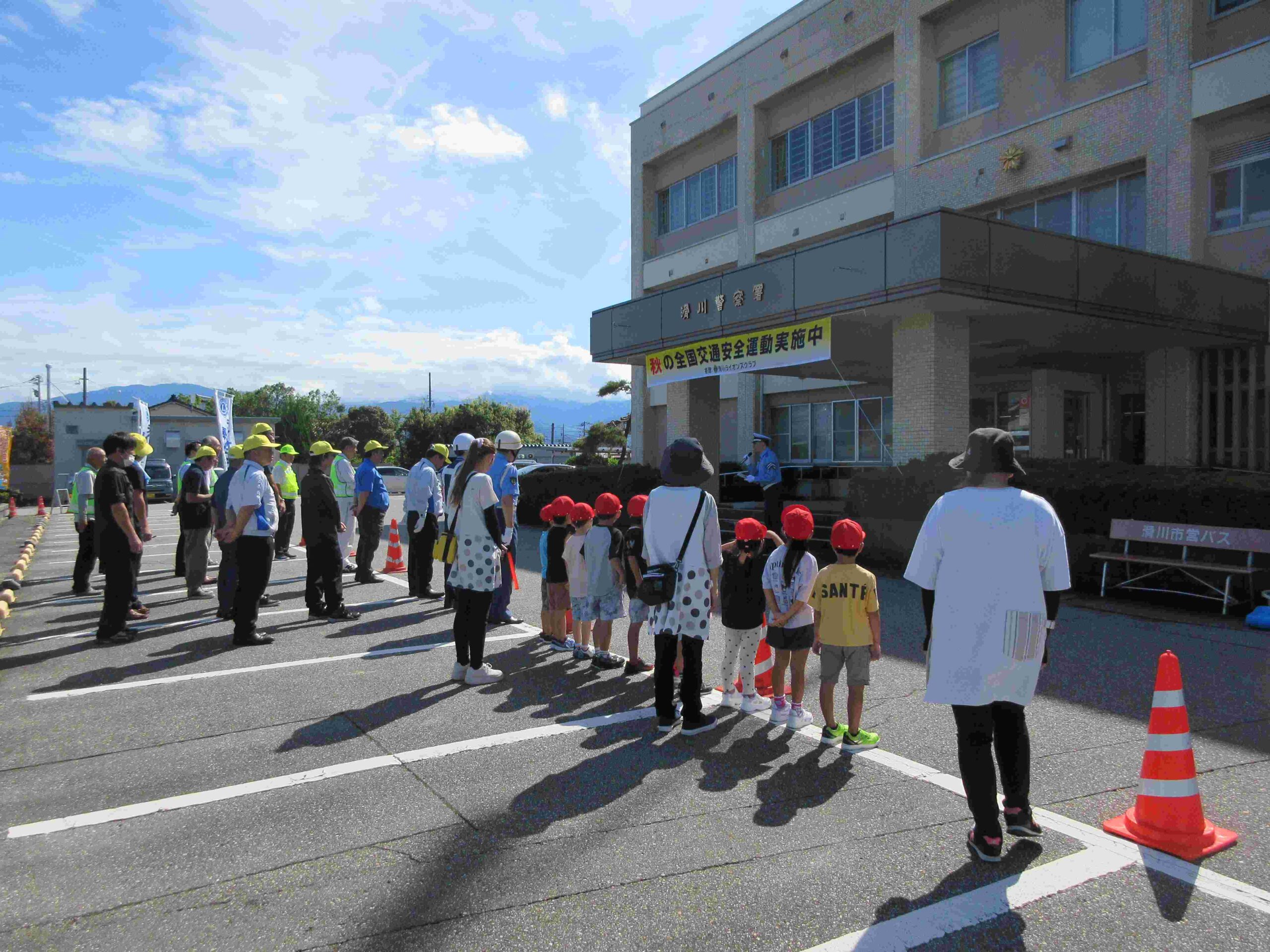9月26日(金)、滑川警察署前において、滑川自動車整備組合による 車両の無料点検を実施しました。 あわせて、滑川市中央保育園の園児が、ドライバーに啓発チラシと 滑川地場産の野菜を手渡して、「安全運転してくだ菜(さい)」と呼びかけ ました。 なお、本事業実施に際し、滑川ライオンズクラブ、滑川交通指導員協議会の ご協力をいただきました。