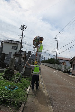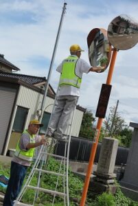 当協会戸破支部(支部長:温井浩)以下役員9名は、9月21日(日)午前11時から約1時間、町内のカーブミラーの点検と清掃を実施し、交通環境の整備をしました。