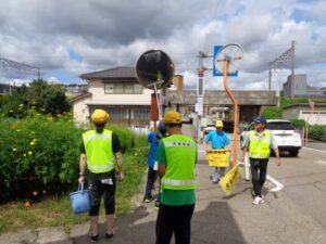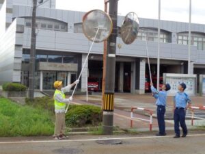 秋の全国交通安全運動初日の9月21日(日)当協会石動5支部(支部長 村田 建)は、管内のカーブミラー清掃を行いました。