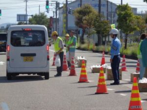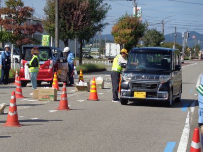 9月28日(日)当協会津沢支部(支部長 山本 哲也)は、国道359号津沢交差点付近において「事故なし」を目指し、同所を通過するドライバーに対し「梨」と交通安全啓発チラシ等を配布し「安全運転で、事故無し」を呼びかけました。