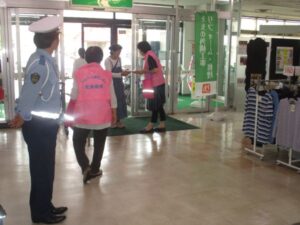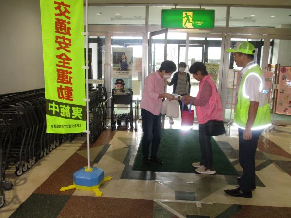 9月29日(月)ハッピータウン氷見ショッピングセンターにおいて、シルバー人材センターの会員15名は手作りのマスコットと啓発チラシ等を来客に配布して、交通安全を呼びかけました。