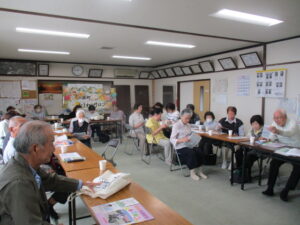 10月7日(火)午後1時40分から、富山市上堀町地内の上堀町公民館で行われた「上堀町ひまわりサロン」会場において、富山南交通安全協会堀川南地域支部が企画した交通安全教室が行われました。同交通安全教室には、上堀町地区居住の高齢者約20人のほか、富山南警察署員、堀川南地域支部役員が参加し、初めに富山南警察署交通課の松島係長さんから、高齢者の交通事故防止についてお話を聞いた後、交通安全DVDを視聴して交通安全意識を高めました。