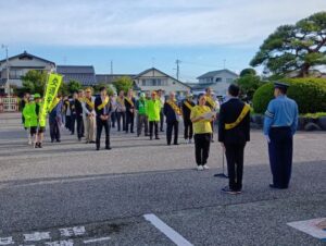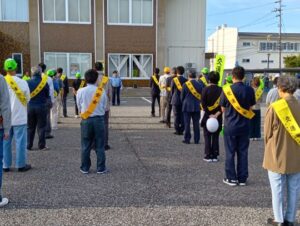 9月22日(月) 舟橋村では、秋の全国交通安全運動に伴う村民大会が開催され、会場である舟橋村役場前広場には、関係者約50人が参加する中、交通安全母の会代表が交通安全宣言を読み上げました。終了後、渡辺村長、大島署長、中川協会長らは、広報車やパトカーに乗車し、村内を巡回しました。