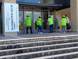 9月26日(金) 北アルプス文化センターで交通安全キャンペーンを行いました。当日、同文化センターでは、町社会福祉大会が開催され、当協会女性部のメンバーが、チラシや啓発グッズを同大会の参加者に配布して、交通安全を呼びかけました。