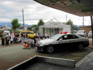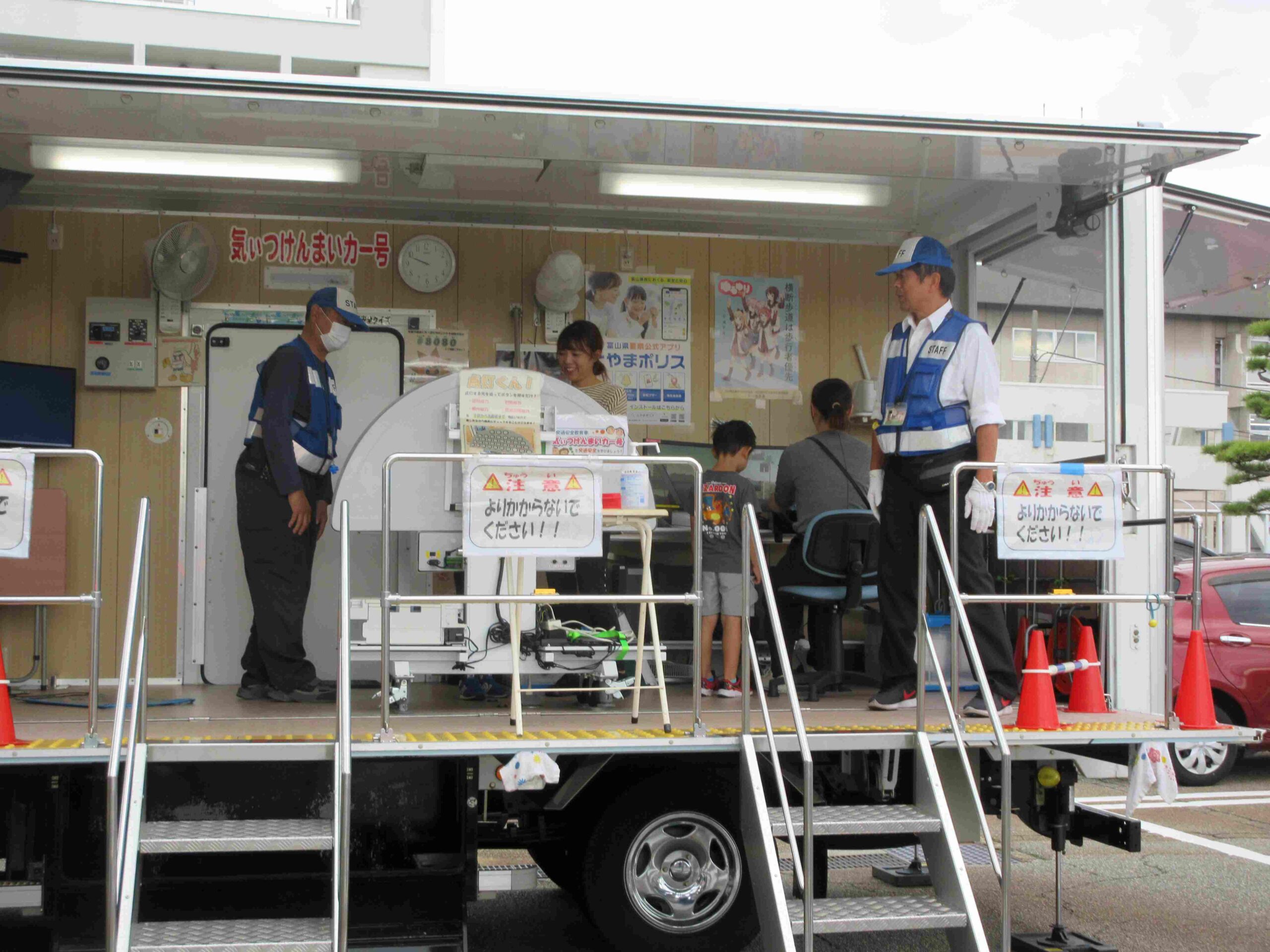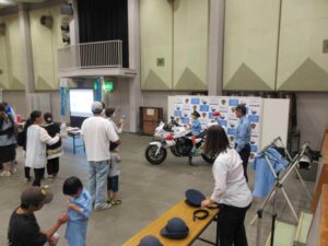 反射材づくり、白バイやパトカーとの記念撮影、「気いつけんまいカー号」などいくつもの体験ブースを回って