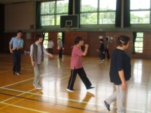 10月18日(土)旧灘浦小学校体育館において、宇波支部は宇波地区健康づくりボランティアと共催して、第21回宇波地区歩こう会を開催し30名が参加しました。藤奈美交番の奥巡査による交通安全と防犯の講話の後、健康運動実践指導者の松田伊甲子さんによる「歩行時における転ばない体づくり」を目指して、音楽に合わせて歩いたり、ストレッチをして楽しく体を動かしました。