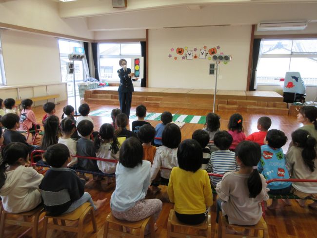 10月28日、魚津こども園において、交通安全教室を開催しました。