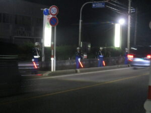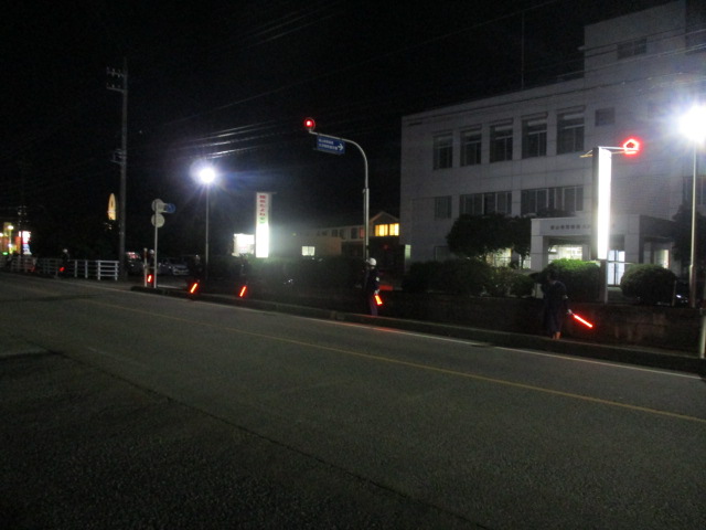 10月30日(木)午後6時から、富山南警察署大沢野幹部交番前国道41号において、「ノーベル街道レッドライト作戦」と銘打った交通安全レッドライト作戦が行われました。同レッドライト作戦には、富山南警察署員、交通指導員、富山南交通安全協会事務局員が参加し、参加者は赤色灯を振り交通安全啓発旗を掲げて、通行する車両の運転手さんに夜間事故防止を呼びかけました。