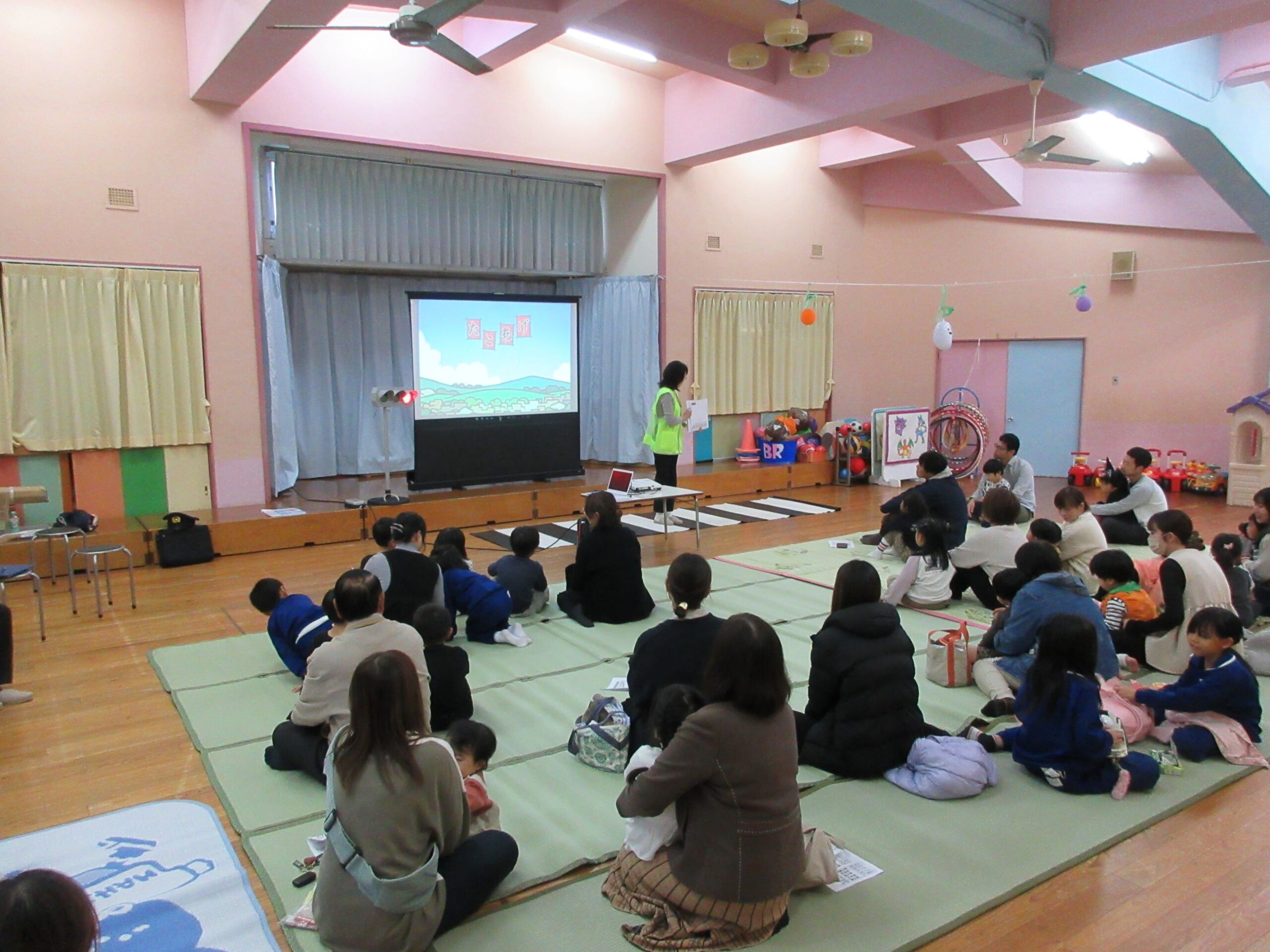 10月31日に村椿保育所の3~5歳児29名及びその家族を対象とした、交通安全教室を開催しました。