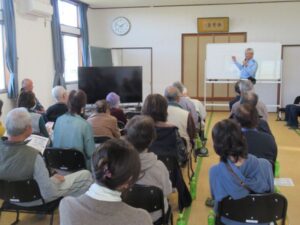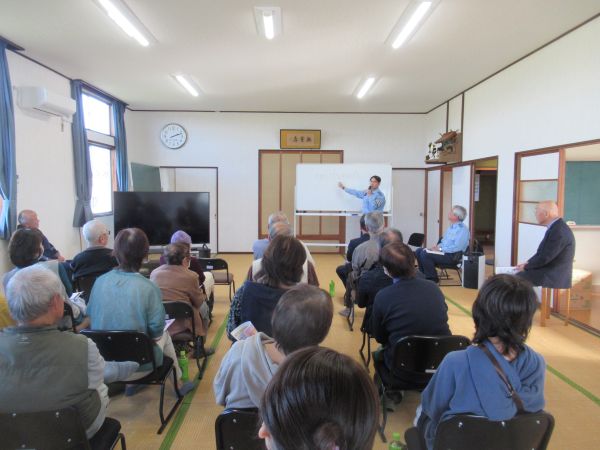 10月30日(木)午後1時30分から、入善町小杉公民館において、入善町小杉地内の小杉いきいき会25名に対する交通安全教室を開催しました。教室では、入善警察署の交通課長が、高齢者の運転時や歩行時の事故防止について、また、入善警察署地域課係長からは振り込め詐欺の傾向と防止策についての話がありました。黒東交通安全協会職員が、参加者全員の靴の踵部に反射シールを貼り、夜間の事故防止のため外出時の反射材の活用や運転時にはライトアップの呼びかけを行いました。