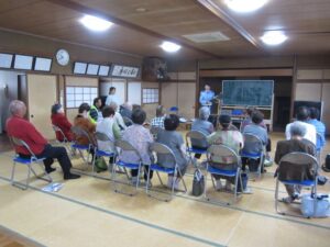 10月14日 立山町坂井沢公民館において、下段社会福祉協議会や上市警察署の協力を得て、高齢者等に対する交通安全教室を開催しました。参加された方に、日の入りが早くなることから早めのライト点灯や外出時における反射材、LEDライト着用などを呼びかけました。