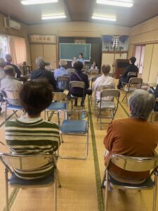 10月22日、浦田2区公民館において、浦田寿会の交通安全教室を開催しました。同教室では、警察官の腹話術や講話、交通安全教育車「気つけんまいカー号」により,