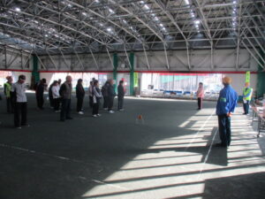 11月16日(日)午前9時から、富山市布瀬町南地内の屋内ゲートボール場「すぱーく富山」において、富山南交通安全協会熊野地域支部が企画した交通安全ゲートボール大会が行われました。同大会には、熊野校下ゲートボールクラブから4チーム、熊野地域支部から2チームの合わせて6チームが参加し、参加者は、第一ゲート出発前に交通安全標語を唱えてから各々競技を開始しました。競技終了後、交通安全協会で用意した商品の外、交通事故防止を願って参加者全員に反射材などの交通安全グッズがプレゼントされ大会を終了しました。交通事故が増加する時期を迎えて、参加者全員で交通事故防止に努めることを確認しました。