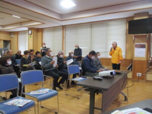 11月28日(金)午後1時30分から、富山市小杉地内の小杉公民館において高齢者交通安全教室が行われました。同交通安全教室には、小杉地区居住の高齢者約30人が参加し、初めに富山南警察署交通課の松島係長さんから加齢に伴う交通安全と交通事故防止についてお話を聞いた後、交通安全DVDを視聴しました。最後に質疑応答の時間が設けられ、参加者からは普段疑問に思っている事柄について活発な質問がありました。蜷川地域支部からは交通事故防止を願って、LED自発光式リストバンドが参加者全員にプレゼントされました。