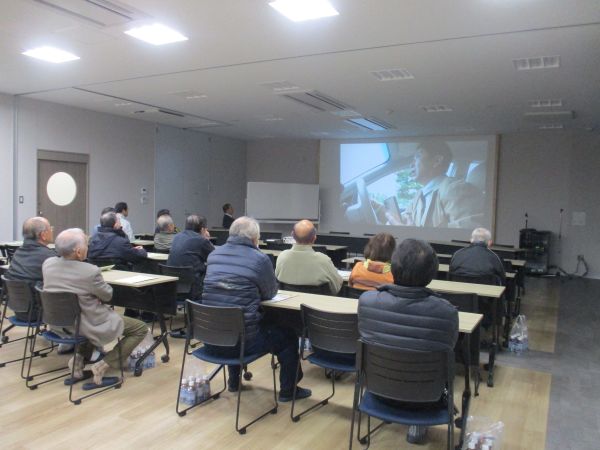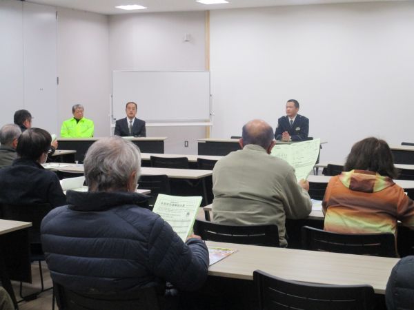 11月28日(金)氷見市農業協同組合南部支店において、十二町支部は運転者講習会を開催し、地区の住民23名が参加しました。「ながらスマホ」の危険性についてのDVDを鑑賞した後、竹本地域交通課長の講話(市内で発生した交通死亡事故の概要、年末の交通安全運動、横断歩道での歩行者優先等)をとおして交通事故防止を呼びかけました。
