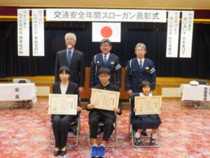 12月2日(火)、南砺市荒木の福光中央会館において、南砺市交通安全協会(岩﨑修会長)は「交通安全年間スローガン表彰式」を行いました。