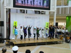 12月6日(土)、多くの買物客で賑わうファボーレにおいて、交通安全フェスティバルを実施。お笑いコンビ「雷鳥」さんによる楽しいステージや古沢小学校5,6年のメッセージ、県警音楽隊の演奏を通して、広く交通安全を呼びかけました。