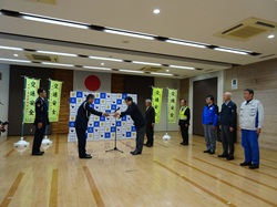 射水安全運転管理者部会は、12月10日(水)午前10時から射水警察署において、124会員事業所の7,967名から集まった「飲酒運転根絶等交通安全署名簿」を、畑山陽一部会長が3名の副部会長とともに、飲酒運転の根絶と安全運転の誓いの言葉を添えて、浅野射水警察署長へ提出しました。この席では、射水市ふたくち地域振興会長からも、2,118名が署名した同趣旨の署名簿が提出され、当協会二口支部の板谷支部長が同席しました。