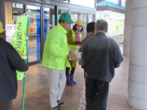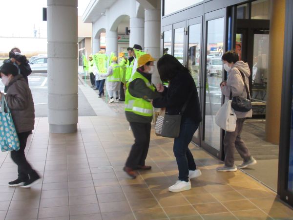 年末の交通安全県民運動重点日である12月12日(金)の飲酒飲酒運転根絶の日に合わせて、午後3時30分から入善町のショッピングセンターコスモ21において、交通安全関係団体約40名が、買い物客等にチラシとガム・キャンディを配布して、飲酒飲酒運転根絶を呼びかけました。