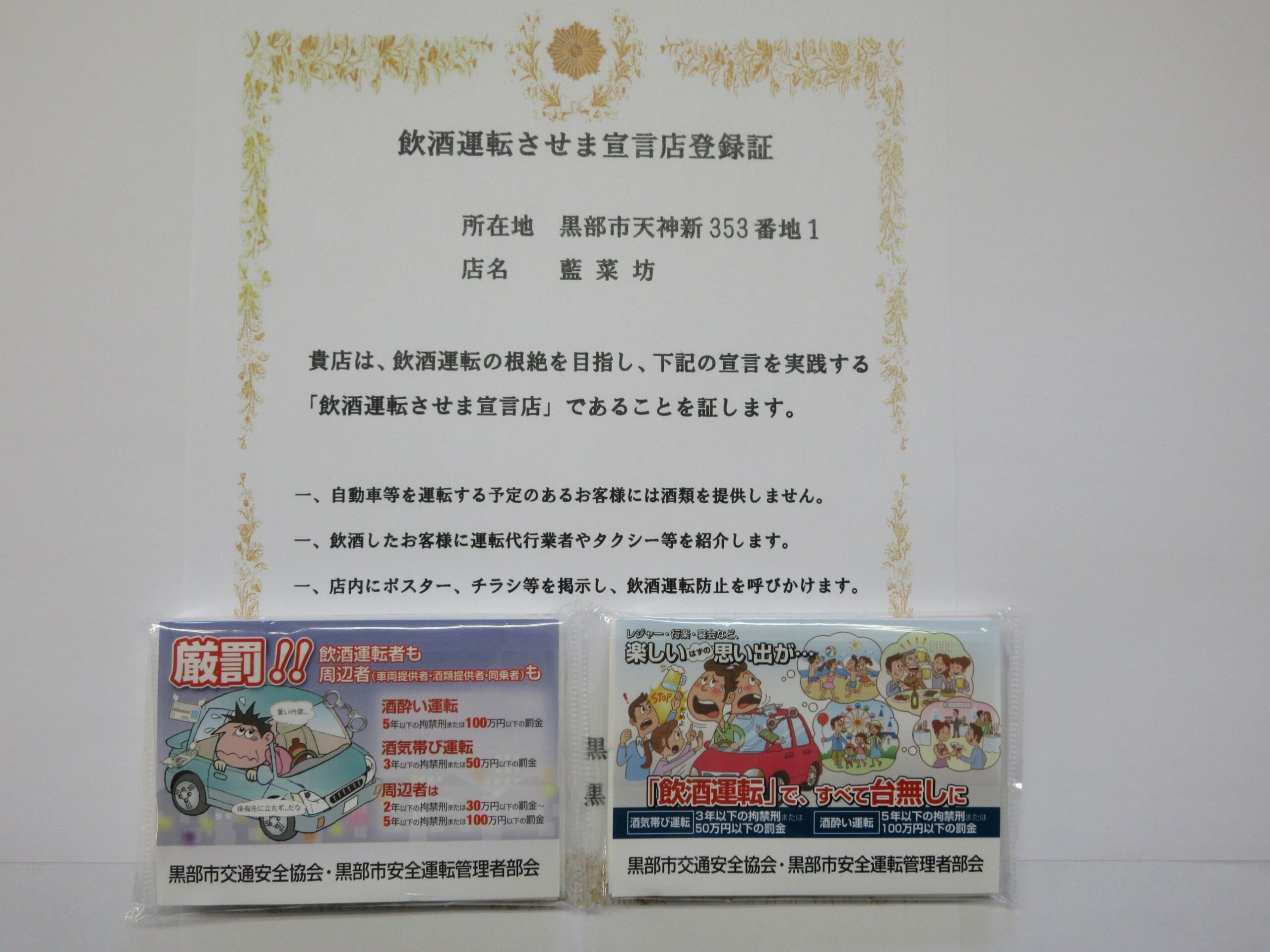 加盟店に来店し配布依頼を実施 配布したポケットティシュ等と登録証