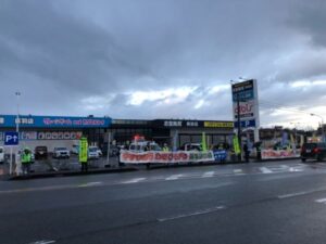 12月15日(月)早朝、県道富山高岡線アルビス呉羽東店前において、呉羽支部(支部長 庄司昌弘)が人波作戦を実施。横断幕及びのぼり旗を掲出し、通勤中のドライバー等に広く交通安全を呼びかけた。