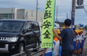 五位小学校は、西高岡駅口信号交差点付近で、野村、太田小学校は、校舎付近において、行き交うドライバーに交通ルールの遵守を呼びかけました。これに伴い校区内の交通指導員や地域交通安全活動推進員とタイアップして各支部長等が児童の安全確保に努めました。