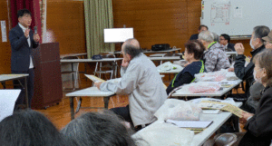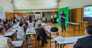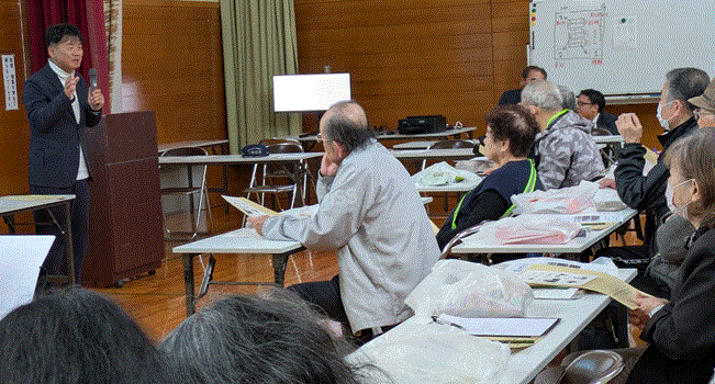 堀 雅一 川原支部長は、日暮れが早くなるこの時期に事故にあわないよう富山県農協組合の協力のもと反射材の視認性が確認できる装置や県安全協会からはドライバーズクリニック装置を川原公民館に取り寄せて、参加者にそれぞれ体験をしていただきました。