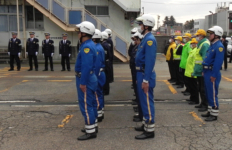 11月以降、射水、高岡、氷見、砺波、南砺、小矢部警察署の管内で交通死亡事故が発生していることから、交通死亡事故を抑止するため、高岡警察署の発声により、6警察署のパトカーと各管轄内の安全協会協会所有の広報車出発式に参加し、各々の広報車は市内を交通事故が多発していることを広報しました。