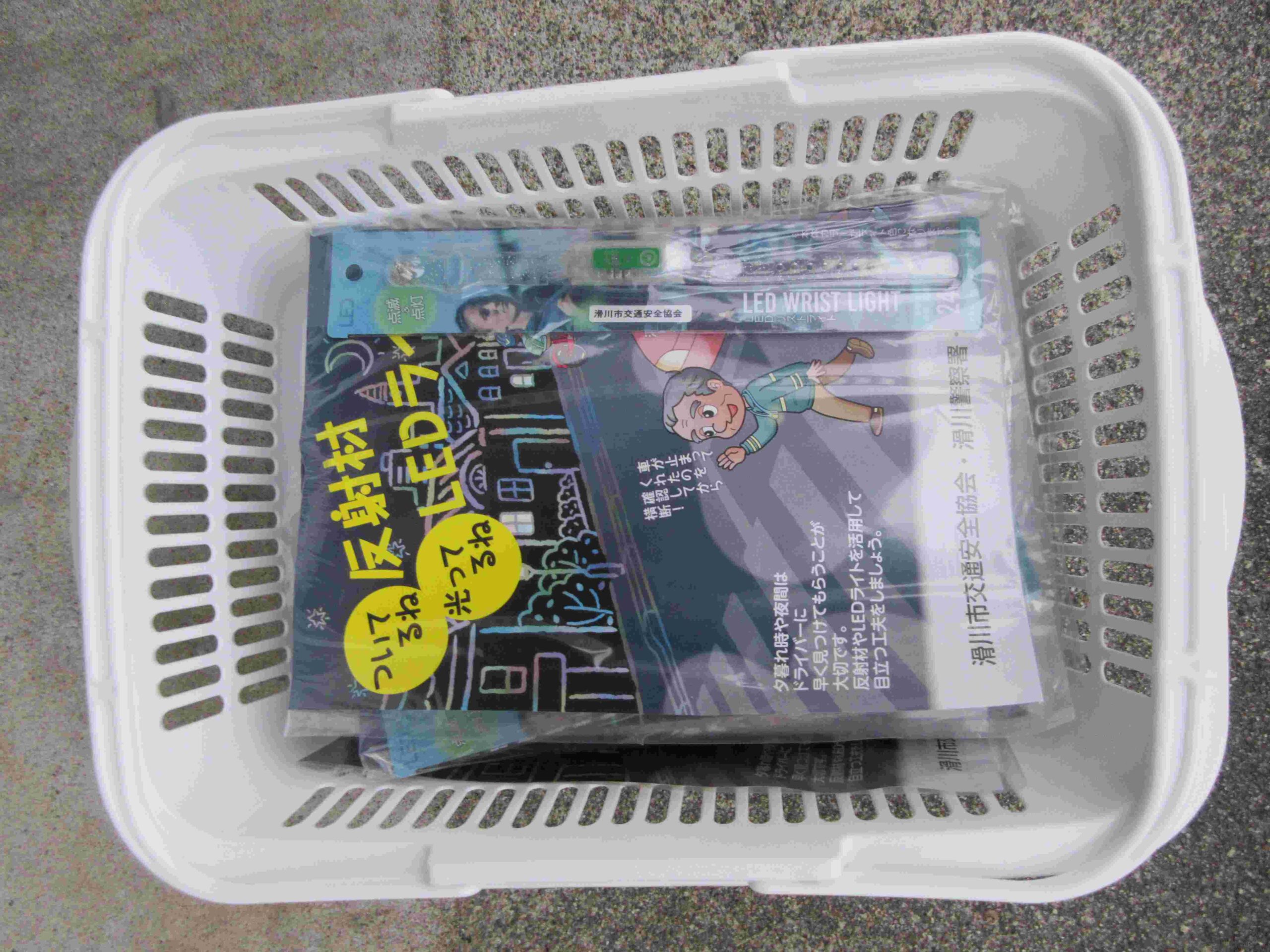 啓発チラシとLEDリストバンドを配布し、薄暮時や夜間、明け方における路上練習時の注意喚起と