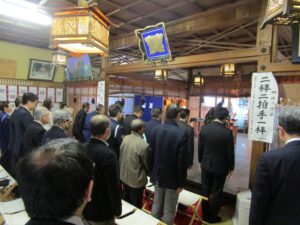 交通関係団体代表者が玉串を捧げ、今年1年の交通安全と交通死亡事故ゼロの継続を祈願しました。