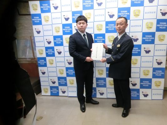 1月13日(火)午後1時30分から砺波警察署長室において、1月11日(日)