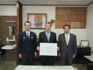 1月14日(水)東京文京区の文京シビックホールにおいて第66回交通安全中央大会において、黒東安全運転管理者部会が富山県の優良安全運転管理者協議会として表彰され、安全運転管理者部会の竹林部会長が表彰状を受けました。1月16日(木)に竹林部会長が入善警察署を訪れ、入善警察署多田署長と黒東交通安全協会深松会長に受賞報告をしました。