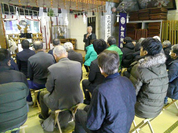 1月24日(土)、北代加茂神社において、長岡支部(支部長 山本貞義)が交通安全祈願祭を行った。大雪の中、呉羽交番所長や長岡小学校長、長岡支部役員、町内会・自治振興会役員等が出席し、順に玉ぐしを捧げ交通事故の減少を誓った。