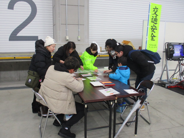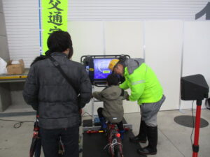 2月7日(土)午前10時から、富山市惣在寺地内の富山県消防防災センターにおいて「ジュニア防災フェスティバル」が開催されました。同フェスティバルには、富山南警察署とともに当交通安全協会も参加し、自転車シミュレータ体験コーナーと手作り反射材コーナーを設置して交通安全を呼び掛けたところ、たくさんの親子連れが来場して賑わいました。