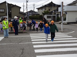 当協会牧野支部(支部長:越後満)は、射水警察署とともに、2月25日(水)高岡市牧野かぐら保育園(参加園児年長児22名)で、交通安全教室を開催しました。安全協会職員の腹話術や、警察官のお話を聞いた後、園周辺の信号の無い横断歩道を使った横断歩行練習を行いました。