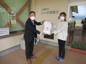 黒東地区(入善町と朝日町)の保育所の年長児に対し、トヨタモビリティ富山㈱から県内の年長児全員に対して、傷害保険付きキーホルダーが寄贈され、交通安全協会が、各保育所に配布しました。傷害保険付きキーホルダーを園児の通園バックなどに取り付けて、園児や保護者が交通安全を意識するようにして、交通事故防止につなげてほしいと、いいの保育所と他黒東地区8か所の保育園に届けました。