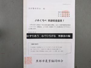 また、JA黒部では、「署名簿の提出及び広報車両による交通安全活動」を十数年前から継続して実施しておられ、本年も4月6日から広報活動が実施されています。