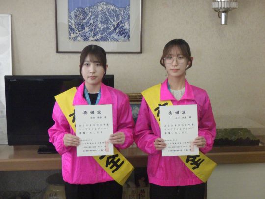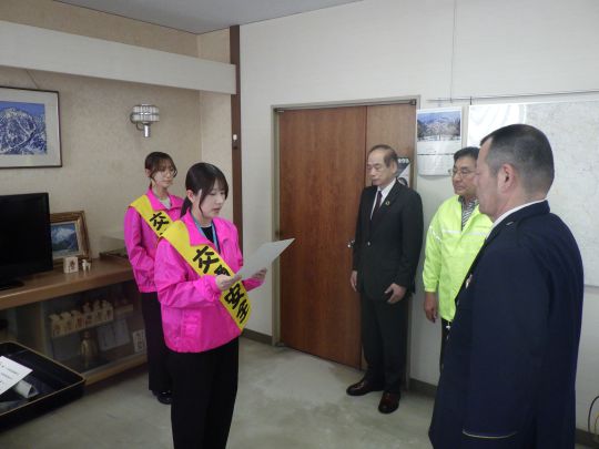 4月3日㈮、上市警察署において、令和8年度のセーフティレディの委嘱状交付式を行いました。今年度は、上市町の富士化学工業株式会社の女性社員2名に委嘱し、春の全国交通安全運動を皮切りに、上市区域の交通安全活動に一役買ってもらいます。