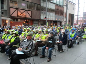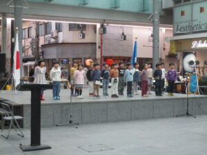 4月7日(火)午後2時から、富山市総曲輪のグランドプラザにおいて令和8年春の交通安全富山市民大会が開催され、富山南交通安全協会からも稲田協会長を初めとして、地域支部役員、交通指導員、地域交通安全活動推進委員等が参加しました。初めに交通事故犠牲者に対する黙とうを捧げた後、アームストロング青葉幼稚園の園児達による元気な歌と「交通安全のお約束」があり、最後に「大会宣言」を採択して第一部を終了しました。第二部では、アトラクションとして警察音楽隊の演奏を楽しんだ後、富山市内の三警察署から集合したパトカーの出発を見送って大会を終了しました。参加者全員、春の全国交通安全運動への取組と交通事故防止への決意を確認しました。
