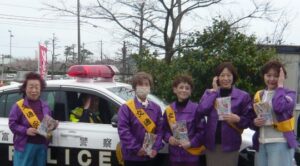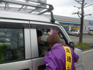 4月9日㈭ 上市町料理飲食業組合(細川和子組合長)は、当協会や交通指導員会と共に、上市町横越の県道を行き交うドライバーに対して「チョコっとでも飲むなら乗らないNOハンドル!!」と書かれたチョコや啓発チラシを配り、飲酒運転の撲滅を呼びかけました。