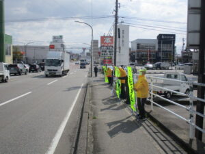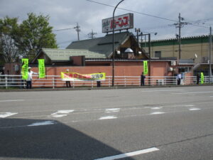 4月11日(土)午前9時から、国道359号黒瀬大橋東詰において、富山南交通安全協会光陽地域支部が企画した交通安全人波作戦が行われました。同人波作戦には、富山南警察署員、光陽地域支部役員、交通指導員等が参加し、交通安全啓発旗や横断幕を掲げて春の全国交通安全運動の広報と交通事故防止を呼びかけました。