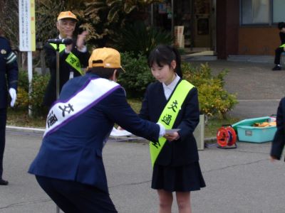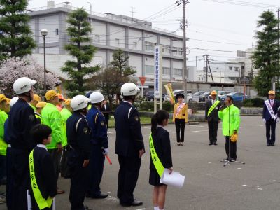 4月6日(月)小矢部市交通安全対策協議会が主催する春の全国交通安全運動に向けた出発式が、小矢部市役所において開催されました。出発式では、小矢部市交通安全スローガンの優秀作品の表彰も併せて行われ、最優秀賞に 津沢小学校6年 藤田結菜さんの「手をあげて 止まれの合図を とどけよう」が選ばれ、令和8年度の小矢部市交通安全スローガンに決定しました。