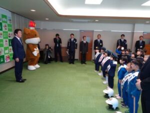 4月8日(水)当協会と小矢部警察署が毎年メルヘンポリスに委嘱している石動西部こども園年長園児に委嘱状の交付を行いました。メルヘンポリスは委嘱状交付式の後、小矢部市役所を訪れ、桜井小矢部市長を表敬訪問し「交通安全を呼びかけます」等と決意表明しました。