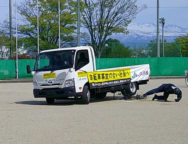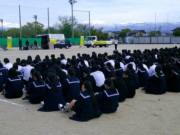 4月13日(月)、速星中学校において、JAあおばがスタントマンによる交通安全自転車教室を開催。スタントマンが車対自転車や歩行者対自転車の衝突事故を再現し、